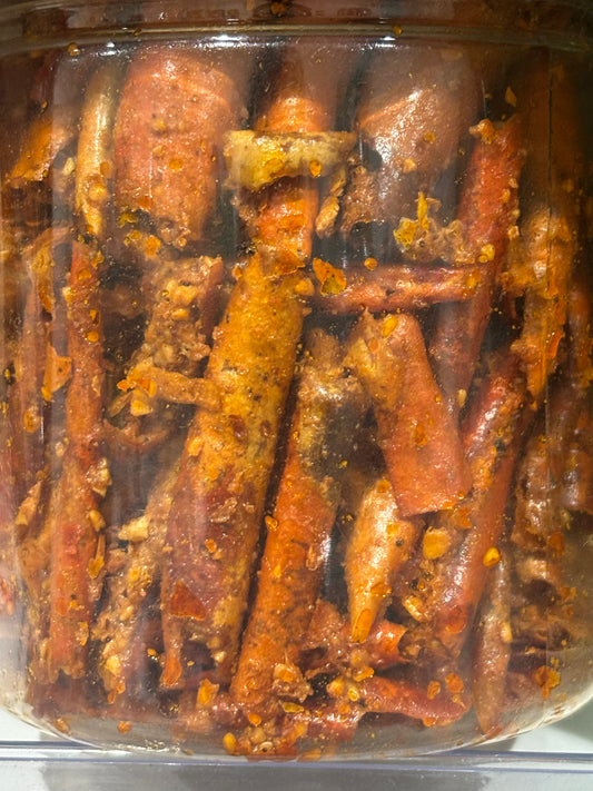 ရောင်းကုန်ပြီငရုတ်သီးမြေပဲအစာသွပ် နှမ်းကပ်ကြော်မွှေး