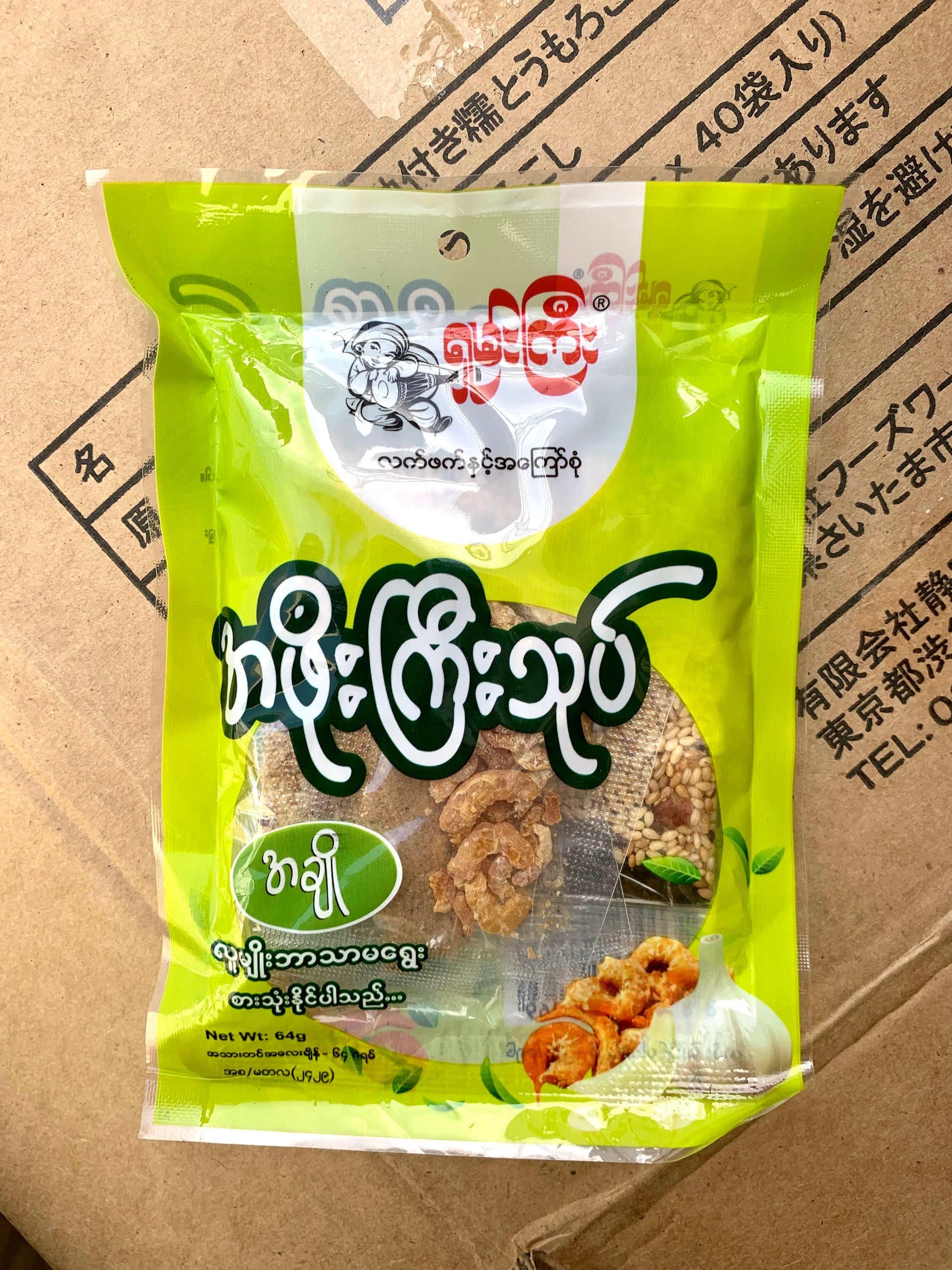 လက်ဖက်နှပ် + အကြော်စုံ + ပုဇွန်ခြောက်